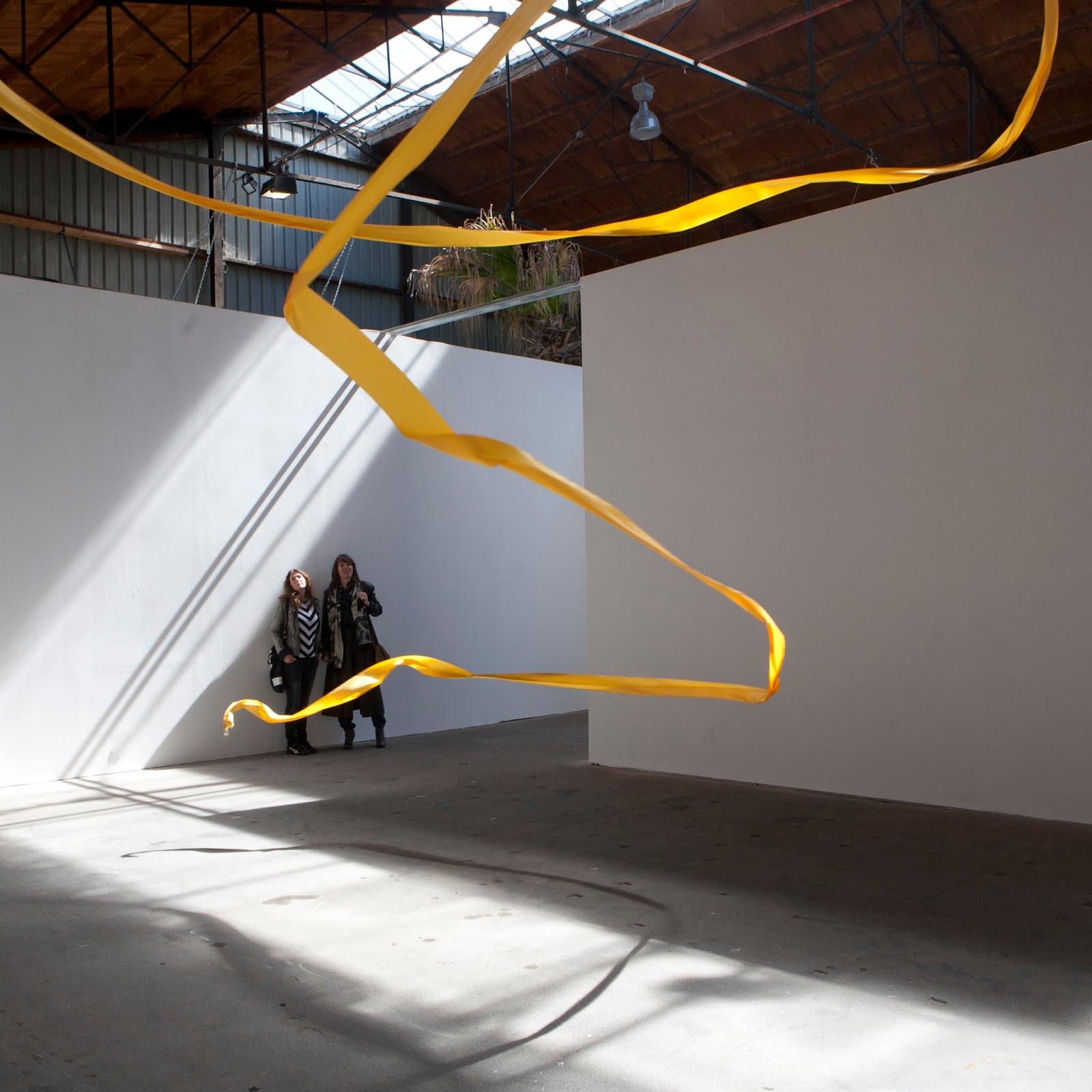die de roze wattenlekkernij de ruimte inblies. Het is een installatie die je